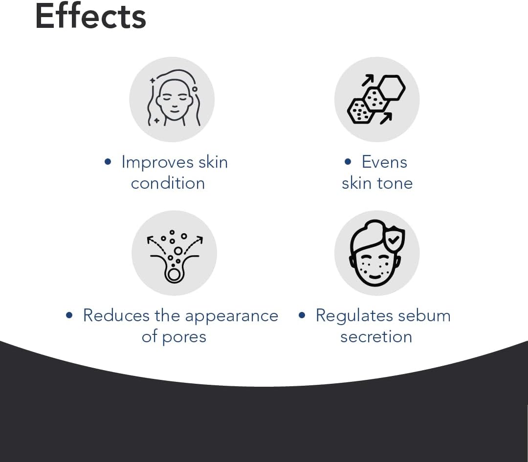 - 10% Niacinamide – pore refining agent, regulates sebum secretion, helps to soothe inflammation, prevents against formation of dark spots.