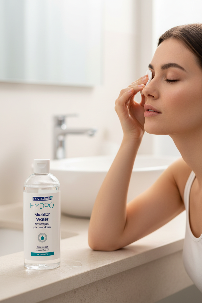 Moisturizing Micellar Water, thanks to the content of micellar particles, effectively removes makeup and impurities from the skin surface, leaving it cleansed and refreshed.