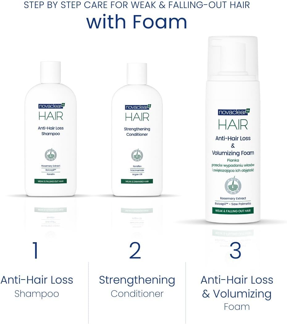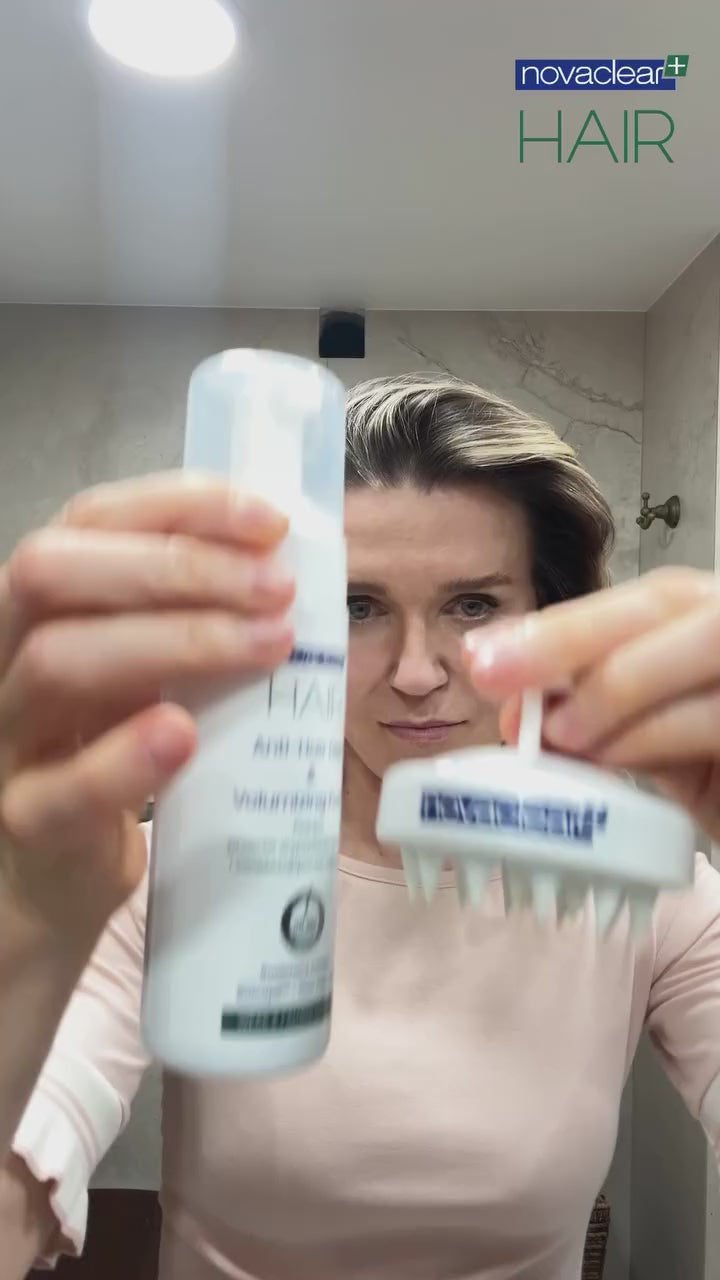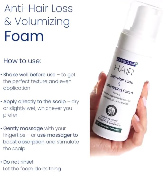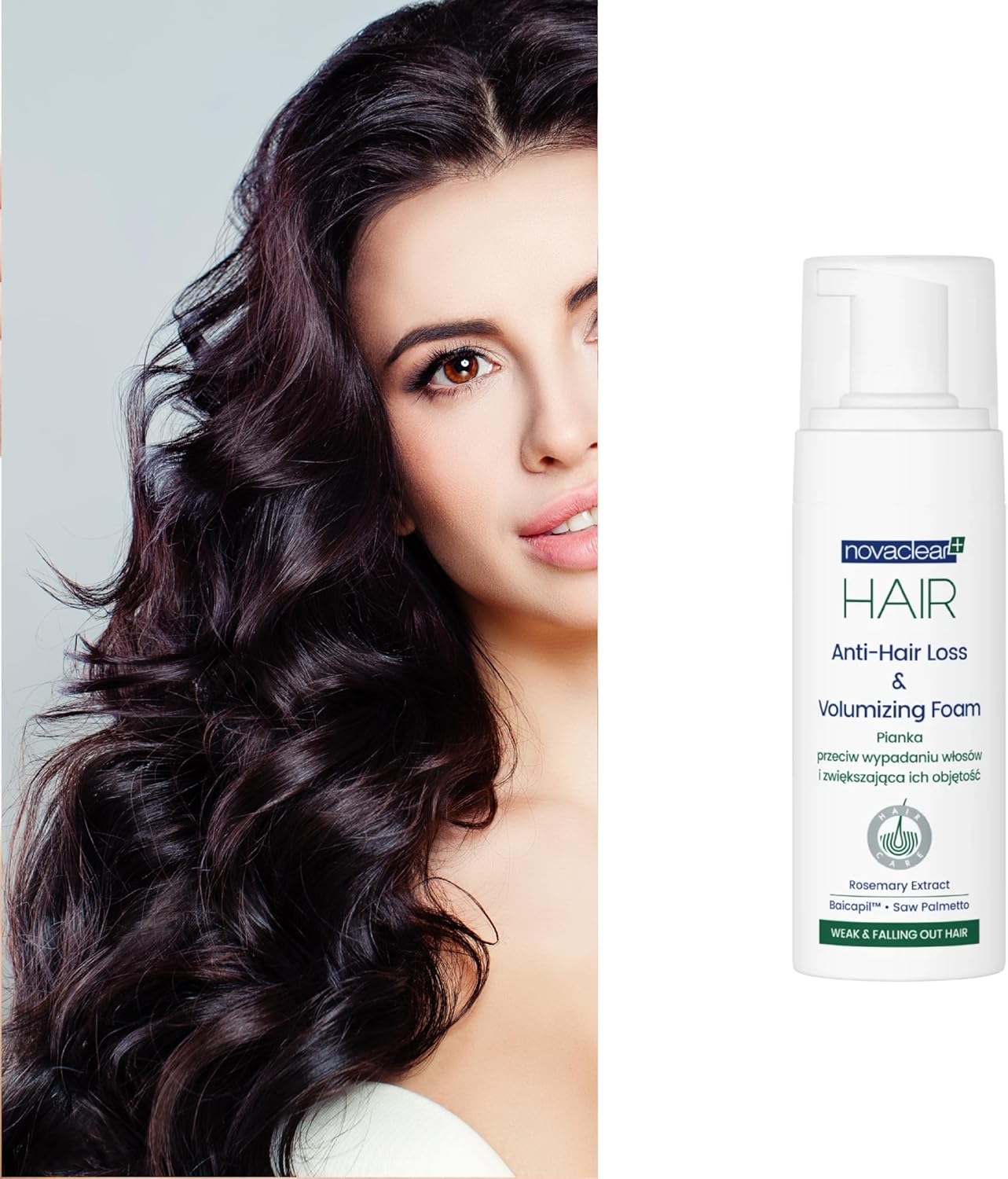 Novaclear's Anti-Hair Loss & Volumizing Foam features a lightweight formula that not only reduces hair loss but also increases volume and lifts hair at the roots, giving it natural bounce.