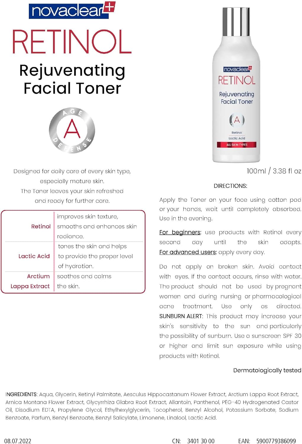 Retinol, Glycerin, Allantoin, Panthenol, Lactic Acid,